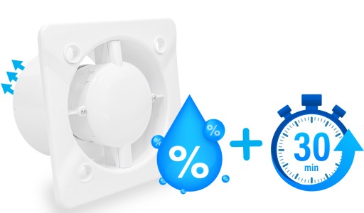❗ CZUJNIK WILGOCI I TIMER - Wentylator Awenta Silent oferuje kombinację czujnika wilgoci i opóźnienia czasowego wyłączenia wentylatora