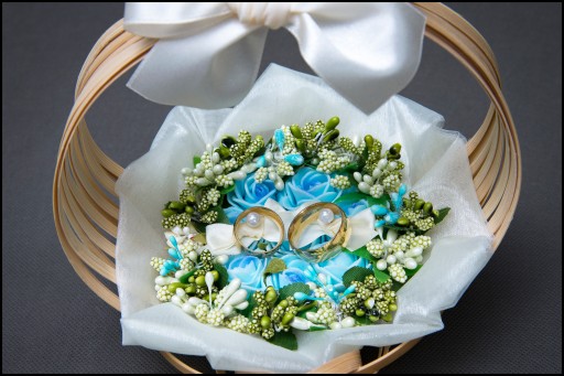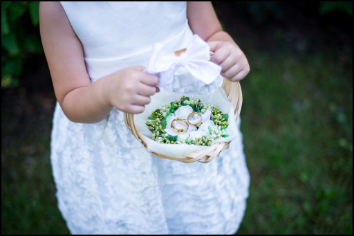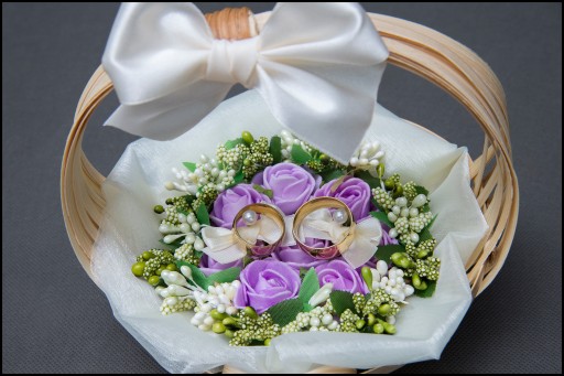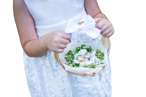 Koszyczek jest idealnym rozwiązaniem w przypadku gdy obrączki do ołtarza niesie dziecko -pałąk umożliwia pewny chwyt a mocowanie obrączek dodatkowo je zabezpiecza.