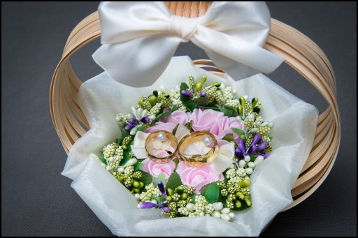 Uroczy koszyczek na obrączki ślubne,