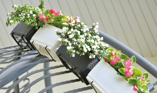 Fakturowana powierzchnia doniczek i niewielkich skrzynek wiernie imituje plecionkę rattanową. Skrzynki opcjonalnie wyposażone są w haki do samodzielnego montażu na barierce. Ponadto w zestawie specjalna wkładka zapewniająca roślinom stały poziom nawodnienia i w efekcie oszczędność wody poprzez gromadzenie jej nadmiaru w dnie skrzynki.