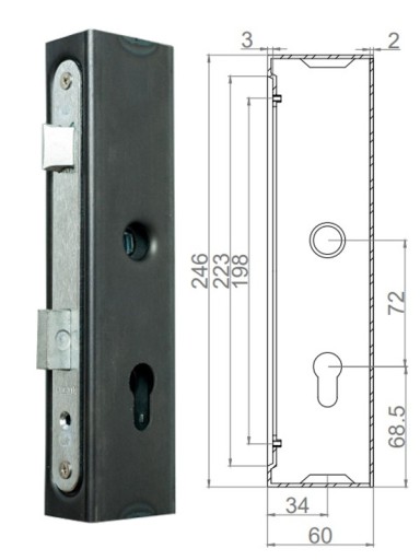 Kaseta z zamkiem zapadkowo-zasuwkowym o wymiarach 60x40.