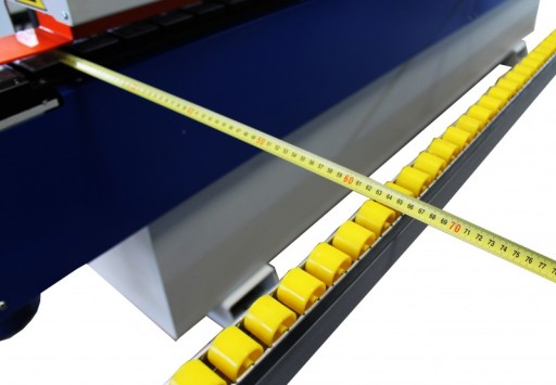 - Nakładanie kleju za pomocą wałka w tym samym kierunku co posuw obrabianego elementu bez konieczności regulacji grubości materiału.