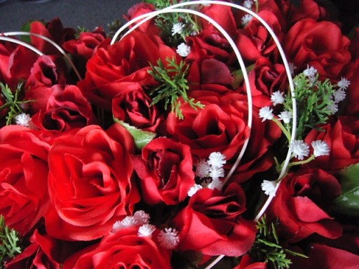 STROIK w kształcie serca z ok. 60 sztuk sztucznych kwiatów róż