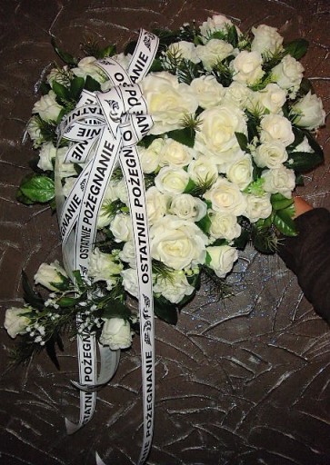 Dodatkowo w stroik możemy GRATIS wpiąć szarfę z napisem OSTATNIE POŻEGNANIE albo kokardę w podanym przez Państwa kolorze.