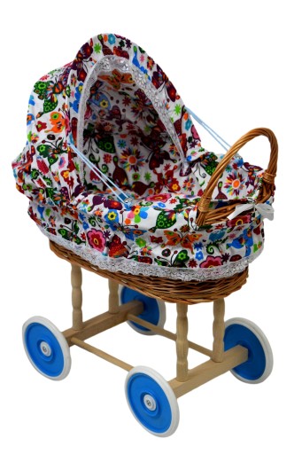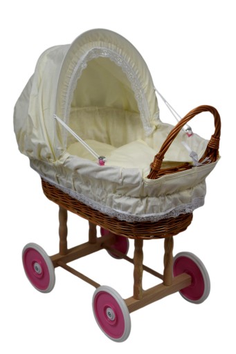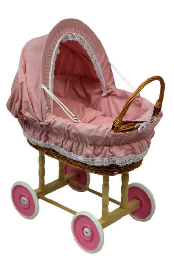 Wiklinowy wózek dla lalek - idealna zabawka dla najmłodszych pociech. Wózek posiada poduszeczkę, kołdrę - kółka w wózki się kręcą.