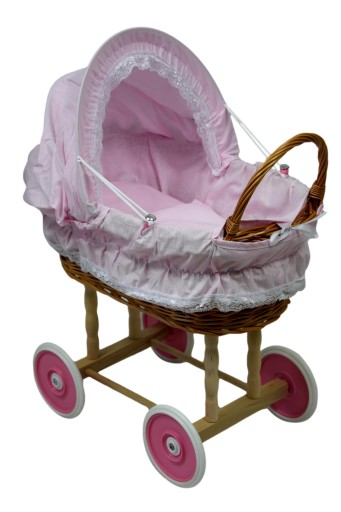 Wiklinowy wózek dla lalek - idealna zabawka dla najmłodszych pociech. Wózek posiada poduszeczkę, kołdrę - kółka w wózki się kręcą.