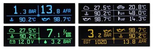 - pomiary temperatur - podłącz do 6 czujników temperatury (cyfrowe i analogowe) i mierz m.in. temperaturę silnika, oleju, skrzyni biegów, przed i za intercoolerem itd.,