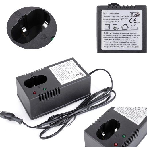 Uniwersalna ładowarka do wkrętarek akumulatorowych zasilanych akumulatorami 18V. Idealnie nadaje się jako zamiennik dla ładowarek dostarczanych z produktami sprzedawanymi na naszych aukcjach oraz na aukcjach innych użytkowników czy też w marketach. Ładowarka pasuje do większości wkrętarek marek takich jak FERM, EINHEL i wielu innych.