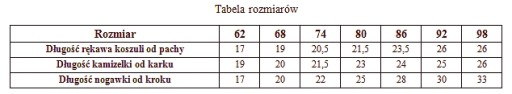 Kompleciki dostępne są w rozmiarach od 62 do 86.