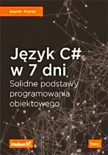 Język C# to nowoczesne narzędzie programowania obiektowego stworzone przez Microsoft. Wyjątkowo przydatne, wielofunkcyjne i powszechnie używane. Także ze względu na wieloplatformowość i otwartą specyfikację. Jednak najważniejsze, że wystarczy gruntownie opanować podstawy języka C# i już możesz tworzyć solidne i wydajne aplikacje zarówno do zastosowań desktopowych, jak i na urządzenia mobilne! To świetna wiadomość i dla początkujących programistów, i dla tych, którzy postanowili poznać nowy język. Ten podręcznik ułatwi Ci szybkie opanowanie podstaw języka C#. Autor, doświadczony guru IT, Gaurav Aroraa, proponuje 7-dniowy plan działania, którego realizacja da Ci pełne spektrum umiejętności programistycznych. Zacznij już teraz kurs języka C#! Językowa biegłość przyniesie Ci satysfakcję i pewność siebie, poprawi Twoją pozycję w zespole czy na rynku pracy. Podstawy języka C# w 7 dni! W 7 dni przejdziesz intensywny kurs: • Architektury i konfiguracji środowiska .NET • Pisania programów C# w zintegrowanym środowisku Visual Studio 2017 • Definiowania zmiennych, składni, instrukcji, tablic, sterowania przepływem • Pojęć programowania obiektowego • Wiedzy o atrybutach, kolekcjach, typach ogólnych oraz LINQ • Tworzenia i stosowania składowych klas, takich jak modyfikatory, metody, właściwości, indeksery • Operacji wejścia-wyjścia na plikach, obsługi błędów oraz stosowania wyrażeń regularnych • Pisania praktycznych aplikacji w języku C#