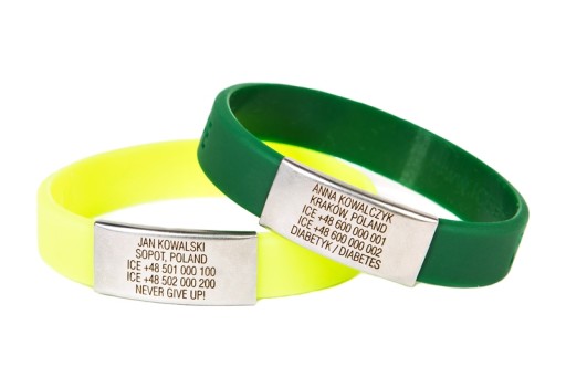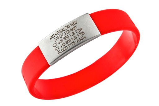 Na opasce ICEstripe Slim masz do dyspozycji 5 linijek tekstu (jeżeli potrzebujesz więcej miejsca sugerujemy wybór opaski ICEstripe Elite), w których możesz zamieścić najważniejsze informacje o swojej osobie. Dane zostaną wygrawerowane laserowo na identyfikatorze ze stali nierdzewnej.