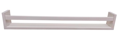 Długa wisząca półka drewniana z ogranicznikiem, malowana na kolor biały.