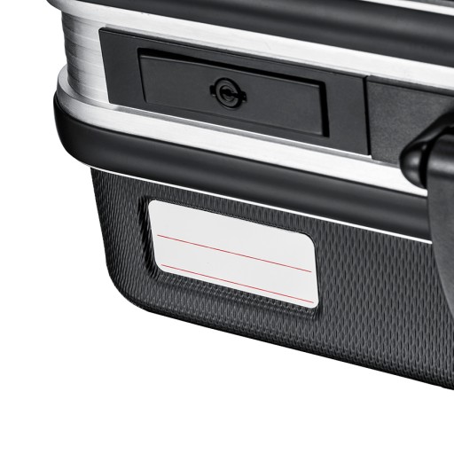 - Dno walizki o wysokości 50 mm, które można mocować za pomocą przycisku, możliwość dalszego podziału za pomocą przekładek, panel pokrywy z 12 dużymi kieszeniami na narzędzia i jedną płaską komorą