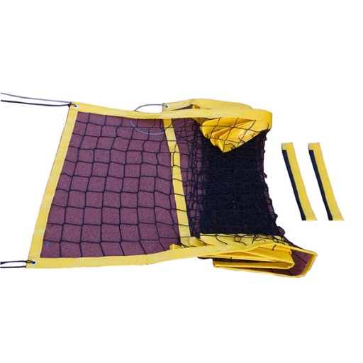 - Naciągi: górny - linka stalowa o grubości 4 mm (możliwość naciągu na profesjonalnych słupkach); dolny: linka polipropylenowa o grubości 6 mm oraz cztery naciągi w każdym z rogów ze sznurka polipropylenowego o grubości fi4; Wielkość oczek: 10 x 10 cm; Rozmiar: 8,5 x 1 m;