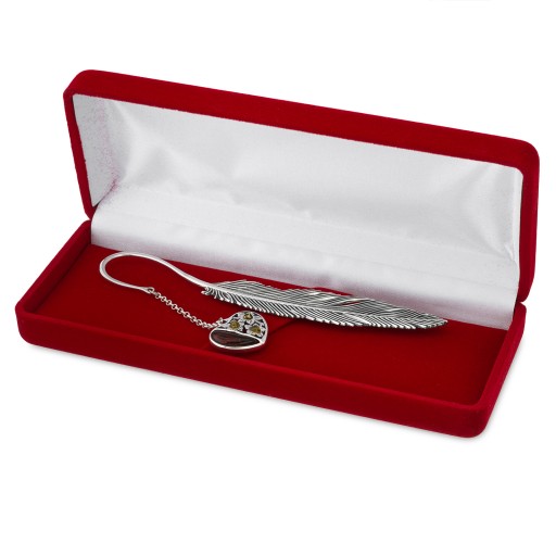 Zakładka zapakowana jest w flokowane opakowanie w kolorze szafirowym, czerwonym lub bordowym.