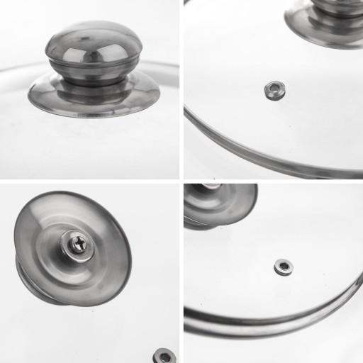 ✅ SZKLANA - Wykonana z żaroodpornego szkła w przezroczystym kolorze a uchwyt i obręcz wykonane ze stali nierdzewnej w srebrnym kolorze. Przezroczysty kolor pokrywki pozwoli nam na sprawdzenie procesu gotowania bez konieczności podnoszenia pokrywki.