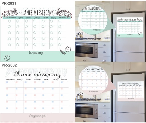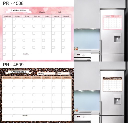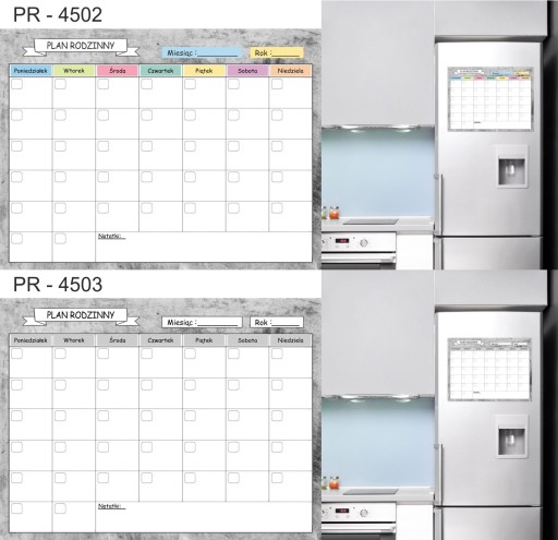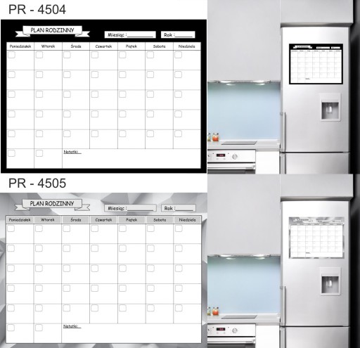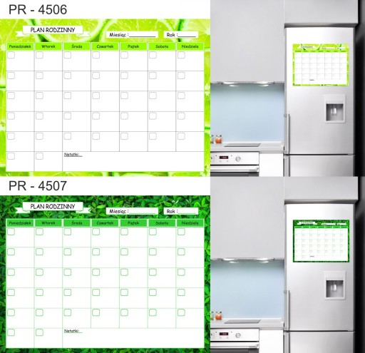 Tablica Planer magnetyczny na lodówkę ( zmywalna), jest pokryta laminatem, który zabezpiecza wydruk przed uszkodzeniami. Jednocześnie pozwala bez obawy pisać markerami suchościeralnymi lub kredowymi oraz ścierać napisy .