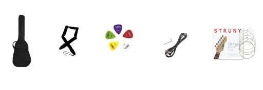 POKROWIEC, PASEK, KOMPLET ZAPASOWYCH STRUN, KABEL 3 METROWY, KOSTKI DO GRY