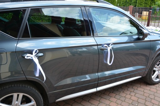 - 4 satynowe wstążki do zawiązania na klamki. Wstążki są w kolorze dekoracji (istnieje możliwość wyboru innego koloru wstążek z kolorystyki dostępnej na dole aukcji)