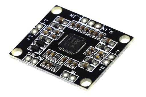 Moduł wzmacniacza audio opartego na układzie PAM8610. Moduł jest kompletną płytką do której należy dolutować złącza wejściowe, zasilania, wyjściowe oraz potencjometr. Wzmacniacz jest klasy D, czyli jest cyfrowy, charakteryzuje się bardzo dobrym stosunkiem sprawności 90% i więcej.