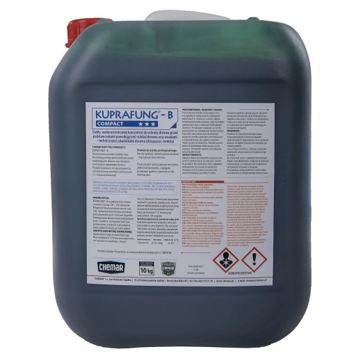 Preparat zawiera związki boru, charakteryzuje się wysoką zdolnością do penetracji w głąb drewna. Nadaje się do użycia wewnątrz, np. do zabezpieczania drewna konstrukcyjnego stosowanego w budownictwie. Zabezpieczone drewno można stosować wewnątrz pomieszczeń. Elementy zabezpieczone środkiem KUPRAFUNG B COMPACT mogą być stosowane w pomieszczeniach przeznaczonych dla ludzi i zwierząt oraz w magazynach pasz i żywności, pod warunkiem uniemożliwienia bezpośredniego kontaktu użytkowników i produktów z zaimpregnowanym drewnem.