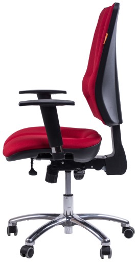 - Wysokie, profilowane oparcie z regulacją w pionie. Pozwala właściwie dopasować podparcie lędźwiowe do wzrostu osoby siedzącej.