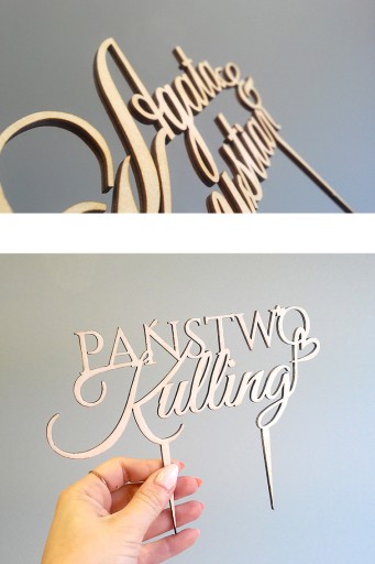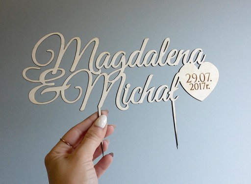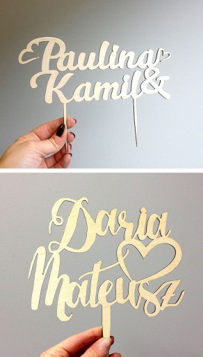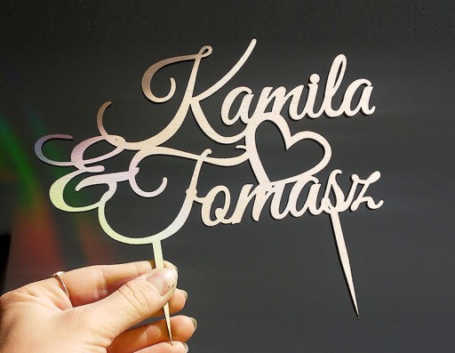 Piękny, personalizowany topper na indywidualne zamówienie do włożenia w tort weselny lub na inną okazję.