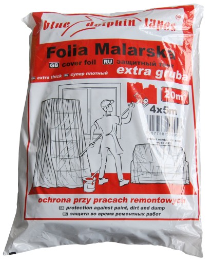 Folia malarska extra gruba BLUE DOLPHIN to produkt, który przeznaczony jest do prac malarskich, remontowych i budowlanych. Odporność na rozerwania, doskonale spełnia swoje funkcje.