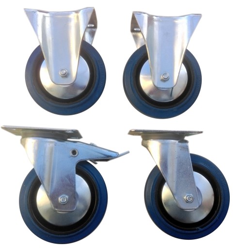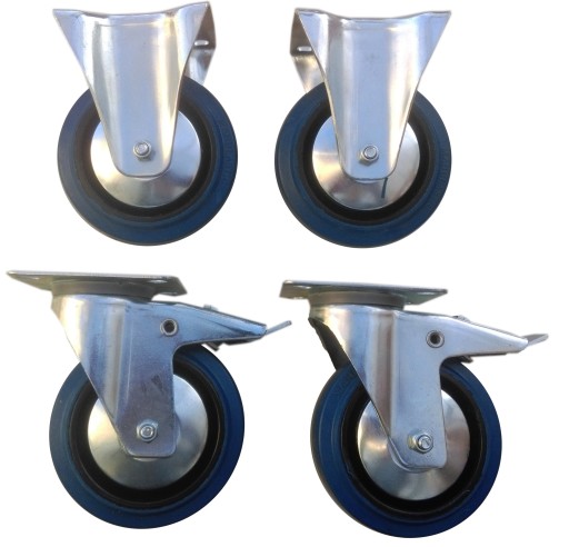 - bieżnik z niebieskiego kauczuku o wyjątkowej sprężystości, przylegającego do tarczy kółka wykonanego z czarnego poliamidu