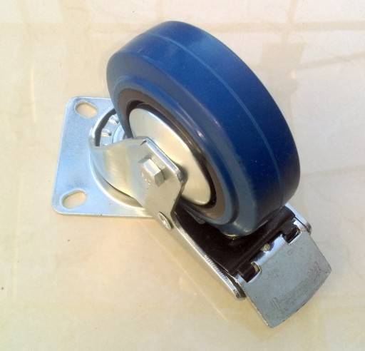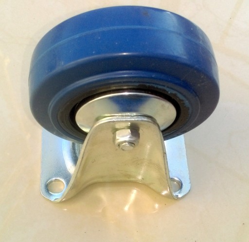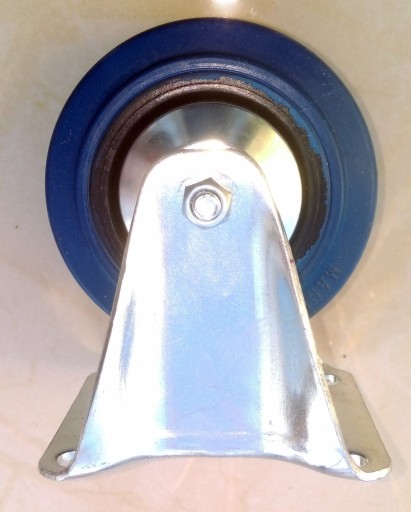 - bieżnik z niebieskiego kauczuku o wyjątkowej sprężystości, przylegającego do tarczy kółka wykonanego z czarnego poliamidu