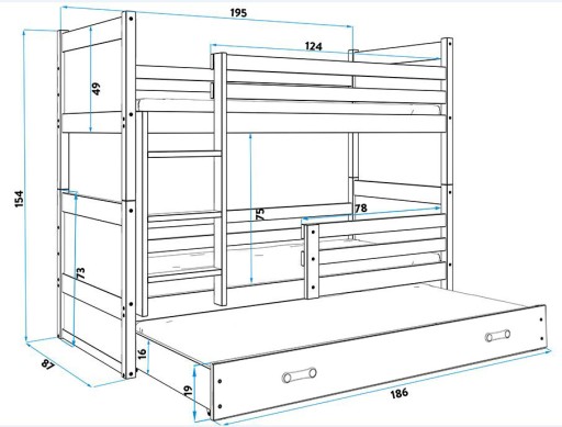 - Łóżko piętrowe 3osobowe Mateusz