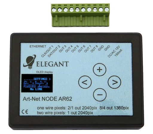 - - 8 wyjść 8 x 170 pikseli maks. odświeżanie 43Hz (8 universes)
