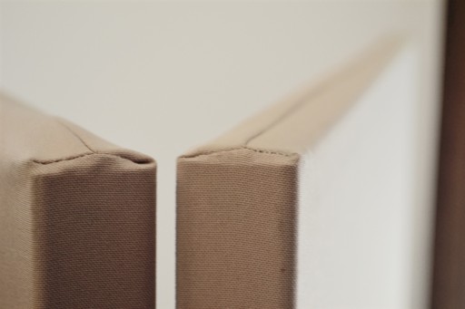 Skrzydło parawanu składa się z tkaniny naciągniętej na ramkę z naturalnego sosnowego drewna (ramka została specjalnie wyfrezowana dla estetycznego efektu) oraz zawiasów w kolorze złota.