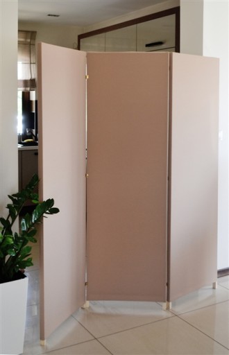 Parawan może być zestawiony z tkaniną w jednym z pięciu dostępnych kolorów: beż, brąz, szary, ecru, biel.