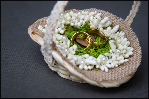 Koszyczek idealnie nadaje się w sytuacji gdy do ołtarza obrączki niesie dziecko -pałąk koszyczka daje pewne trzymanie a "wianuszek" z gipsówki utrzymuje obrączki na swoim miejscu