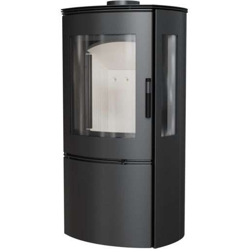 FALCON to stalowy piec wolnostojące o prostych kształtach i ciekawym zaokrąglonym froncie, który umożliwia widok ognia z różnego kąta.