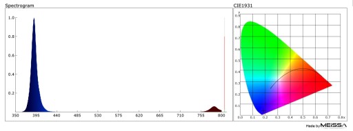 Barwa światła ±10%: UV - 390nm ± 5nm - widmo zmierzone