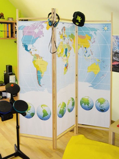 Na parawanie możemy umieścić wszystko, co tylko Wam przyjdzie do głowy, aby ułatwić waszym pociechom przyswajanie niezbędnej wiedzy. Może to być mapa, alfabet, tabliczka mnożenia, wzory matematyczne, słówka itp.(projekt można przesłać lub kupić u nas).