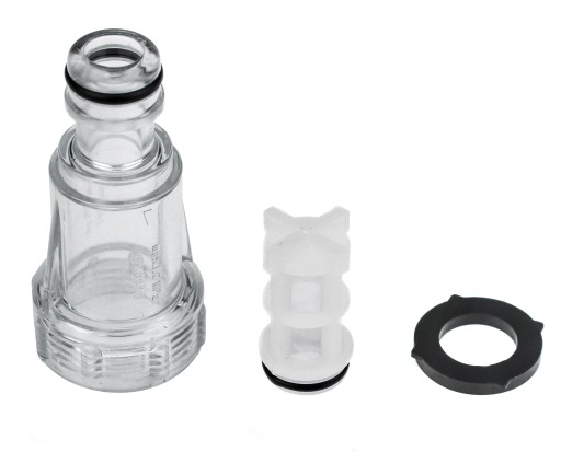 Posiada standardowy gwint przyłączeniowy do myjki 3/4" oraz wyjście na wąż ogrodowy. Średnica filtra od strony przyłączenia wynosi 31,5mm.