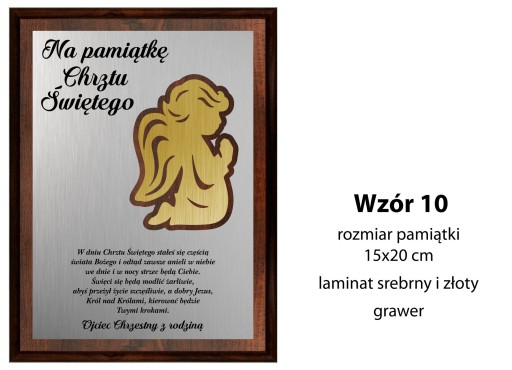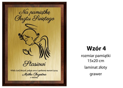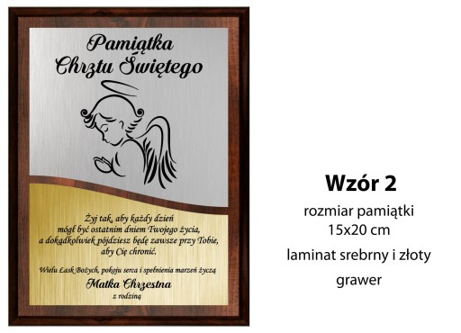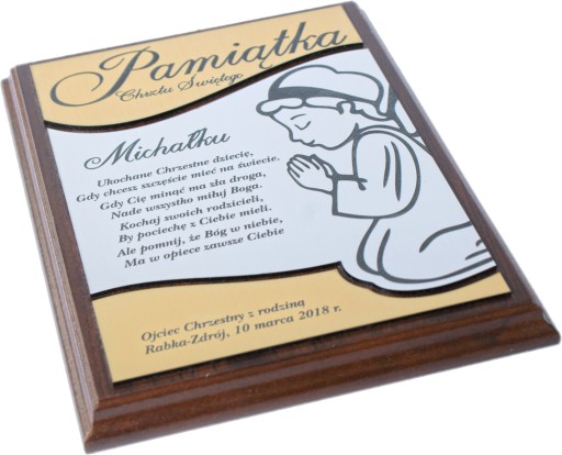 - laminat dostępny w kolorze złotym lub srebrnym z indywidualną grawerowaną treścią życzeń GRATIS,