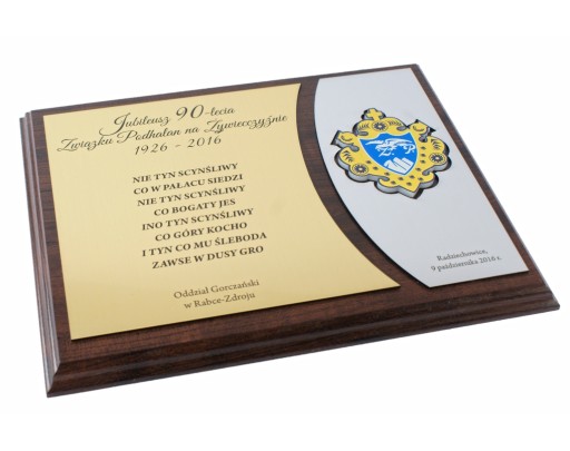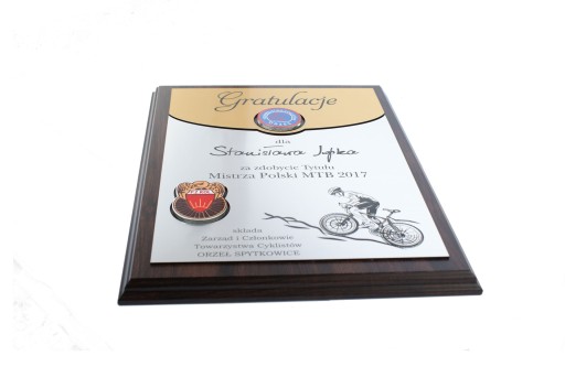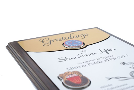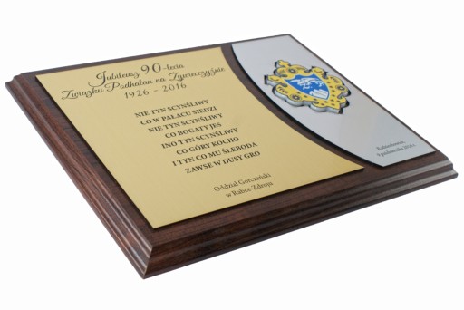 Dyplom wręczany z okazji podziękowania za wspólną pracę (współpracę). Wykonany na ekskluzywnym podkładzie drewnianym z grawerowaną laserem złotą i srebrną płytą szczotkowaną na której umieszczona jest dowolna dedykacja grawerowana laserem. Dwie płyty wykonane z materiałów metalizowanych z napyloną warstwą metalu imitują wiernie strukturę metalu. Dyplom posiada wypukłe logo wykonane w technologii, która daje wspaniałej jakości druk. Etui, które widzą Państwo na zdjęciach poniżej nie jest wliczone w cenę dyplomu.