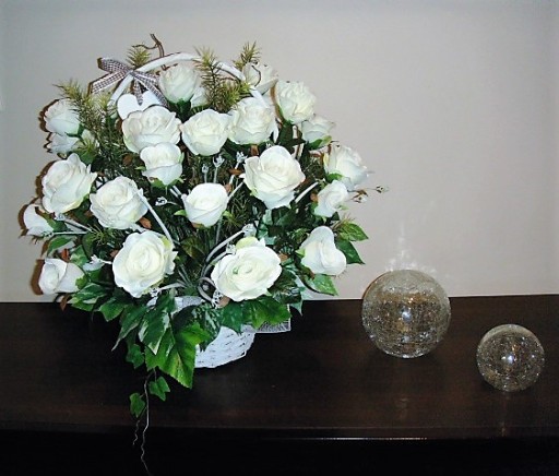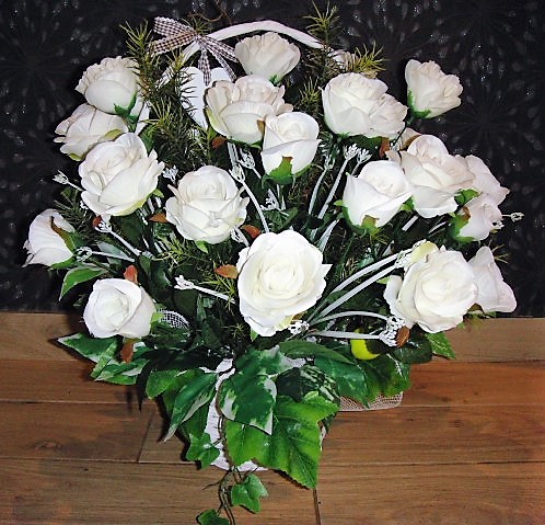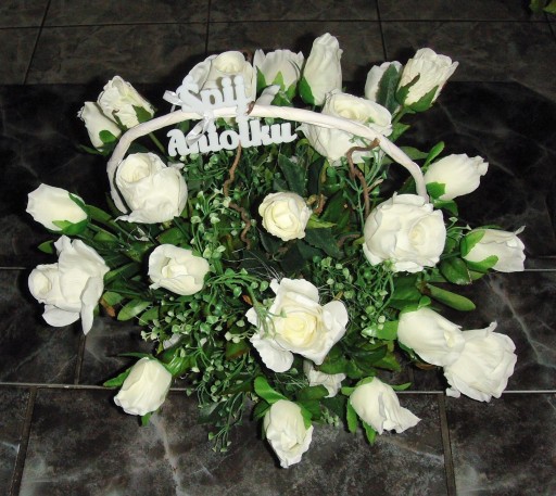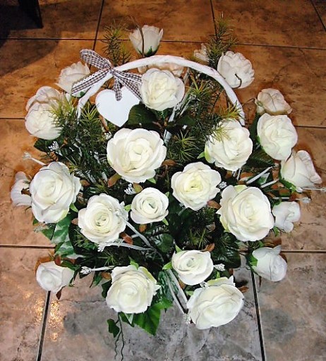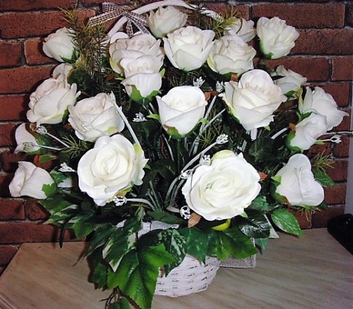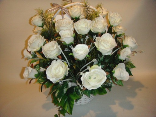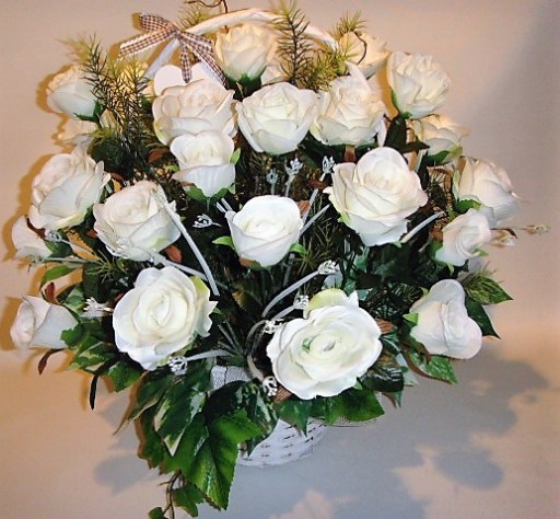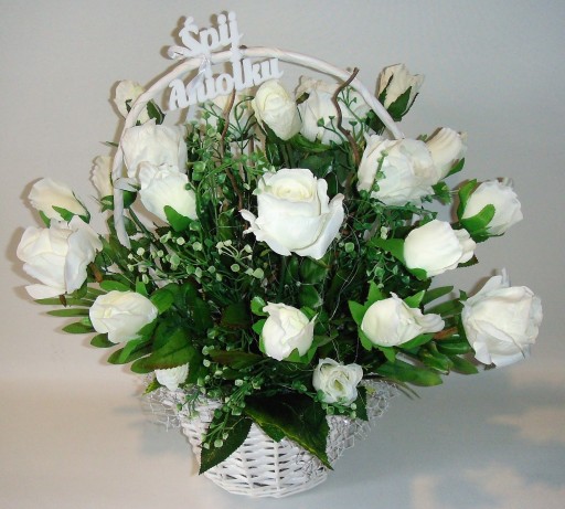 Na tej aukcji oferujemy Państwu piękny kosz 25 białych sztucznych róż który możemy podarować na każdą okazję. Róże umieszczone są w koszu o bardzo stabilnej podstawie, kompozycja wykonana jest bardzo starannie z każdej strony z materiałów wysokiej jakości w naszej pracowni florystycznej w Polsce. Do wykonania kompozycji użyto 25 sztuk białych sztucznych róż w różnej fazie rozkwitu, gałązek leszczyny, bluszczu i innych dodatków florystycznych. Kompozycja utrzymana w zdecydowanie białej kolorystyce, wykonana zgodnie z najnowszymi trendami florystycznymi z dbałością o każdy detal. Wszystkie wykonywane przez nas kompozycje i bukiety są bardzo starannie wykonane, mają indywidualny charakter, są oryginalne i niepowtarzalne gdyż bardzo lubimy je tworzyć.