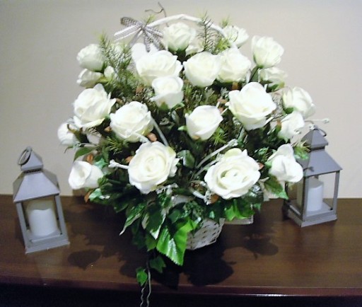 KOSZ BIAŁYCH RÓŻ odpowiedni na wiele okazji Podziękowania dla Rodziców, Rocznicy, Ślubu, podziękowania czy też przeprosin, Jubileuszu... Dnia Matki, Urodzin, Imienin