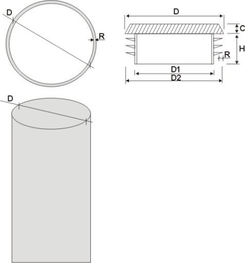 Zaślepki okrągłe wykonane z tworzywa sztucznego metodą wtrysku, przeznaczone do zaślepiania rur i otworów. Zaślepka zbudowana jest z części zewnętrznej wystającej poza rurę oraz z części wewnętrznej tzw. rdzenia, wbijanego w środek rury. Matowa struktura górnej części zaślepki nadaje jej estetyczny wygląd. Chropowata powierzchnia zapobiega zarysowaniom w opakowaniach zbiorczych. Dolna część zaślepki składa się z rdzenia oraz wystających „lamelek”. Podczas wbijania zaślepki, lamelki dopasowują się do grubości ścianki rury.