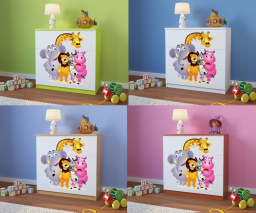 Komoda dziecięca Babydreams ZOO wykonana jest z wysokiej jakości płyty meblowej. Komoda posiada 3 głębokie szuflady o głębokości 34cm. Wyróżnia ją stabilna konstrukcja, oraz zaokrąglone fronty. Komoda będzie stanowić idealne uzupełnienie oferowanych przez naszą firmę łóżeczek Babydreams. Dostępna jest w różnych wersjach kolorystycznych. Istnieje możliwość zakupu komody z obrazkiem lub bez. Podana cena jest ceną komody z obrazkiem.
