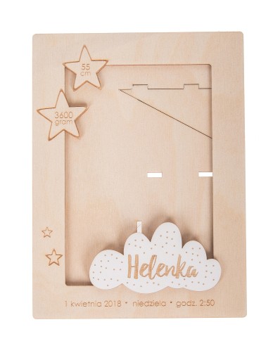 Ramka z metryczką 2 z białą chmurką 15x10cm