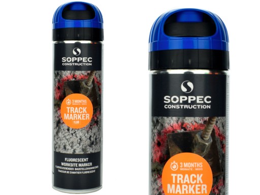 Track Marker firmy Soppec to farba fluorescencyjna w aerozolu przeznaczona do wykonywania oznaczeń na placach budowy oraz do znakowania przy pracach geodezyjnych i pomiarowych. Z jej pomocą wykonamy widoczne, odblaskowe oznaczenia, podkreślając niebezpieczne strefy, zaznaczając pole pod wykop lub znacząc dokonane pomiary. Dzięki farbie Track Marker niewielkim kosztem, znacznie zwiększymy bezpieczeństwo na budowie i usprawnimy pracę. Aerozol stosowany jest w sytuacjach gdy długotrwałe oznaczenia nie są pożądane, utrzymując się na znaczonym obszarze do 3 miesięcy.