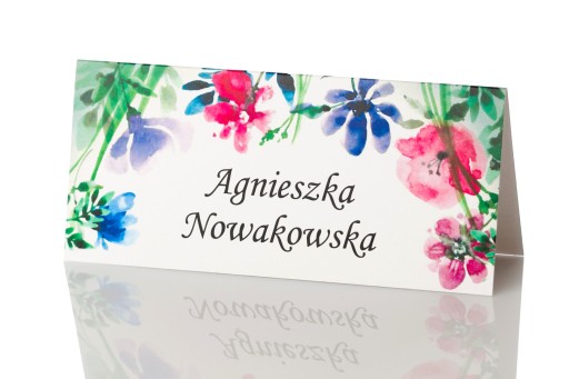 Wizytówki na stół z imionami i nazwiskami gości weselnych.