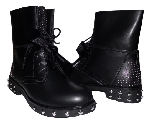 Niebanalne, modne czarne workery z ćwiekami, lekko ocieplone,