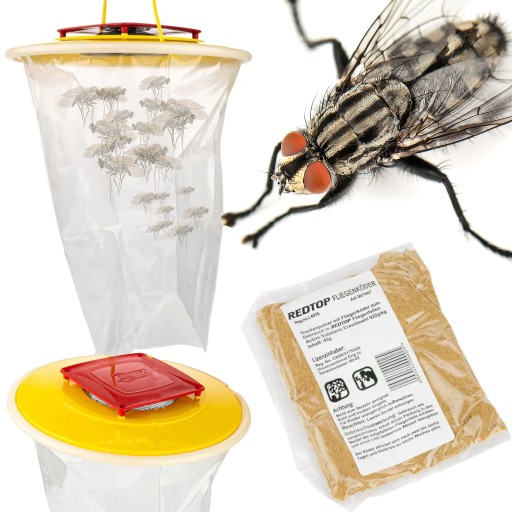 Pułapka wabiąca REDTOP została zaprojektowana do użytku zewnętrznego. Dzięki specjalnej konstrukcji pułapki muchy bez problemu do niej wchodzą ale nie są wstanie już z niej się wydostać. Wabione są specjalnie dobranymi atraktami pochodzenia spożywczego. Jest całkowicie ekologiczna i nie zawiera żadnej chemii! Muchy w ogrodzie, obejściu domowym, altance i na tarasie są prawdziwym utrapieniem. Pułapka REDTOP pozwoli w bardzo dużym stopniu ograniczyć liczebność much w twoim otoczeniu.